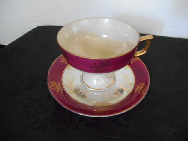 Beautiful Antique Art Deco Porcelain LusterWare Pedestal Tea Cup & Saucer c 1940