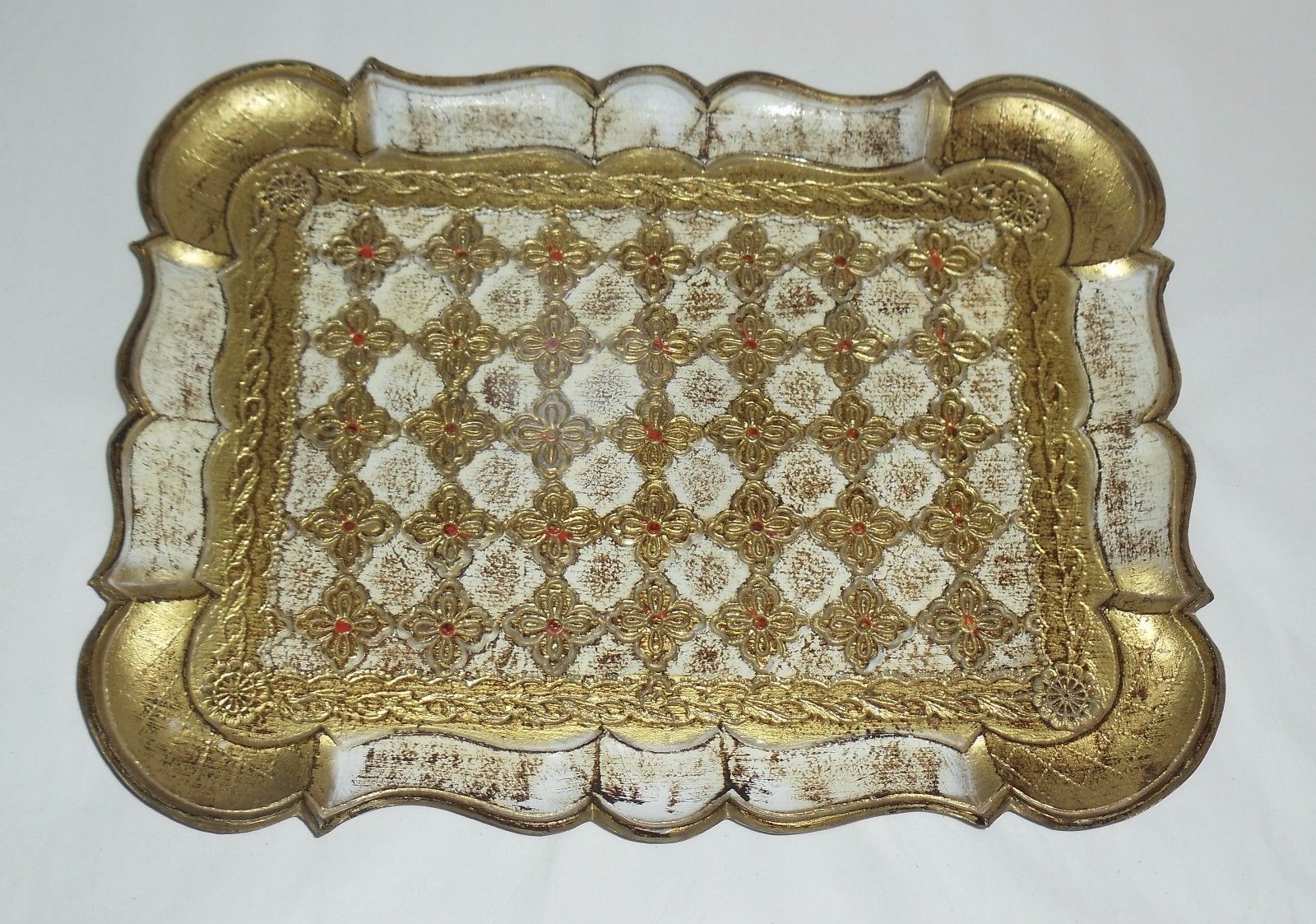 Title (ebay affiliate link): Vintage Italian Florentine Gold Gilt White Tole Dresser Jewelry Tray