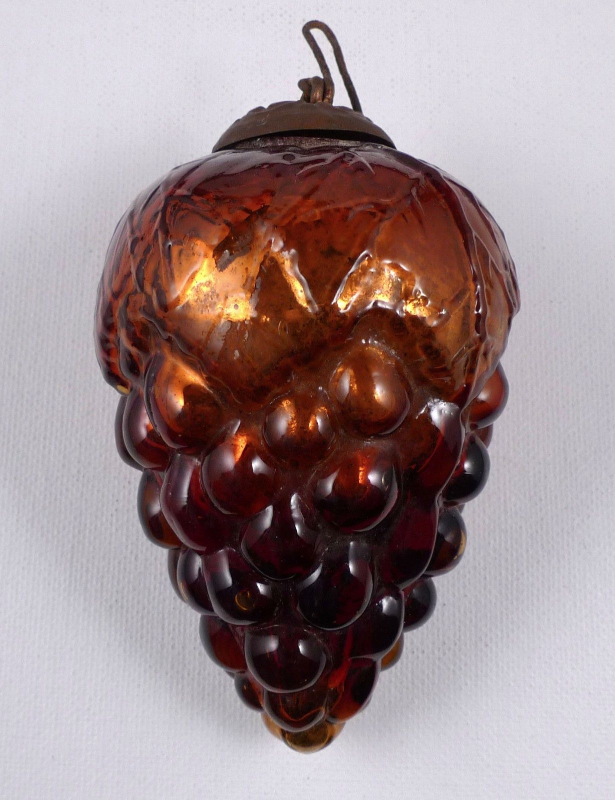 Vintage Dark Amber Glass Kugel Grape Cluster Christmas Ornament