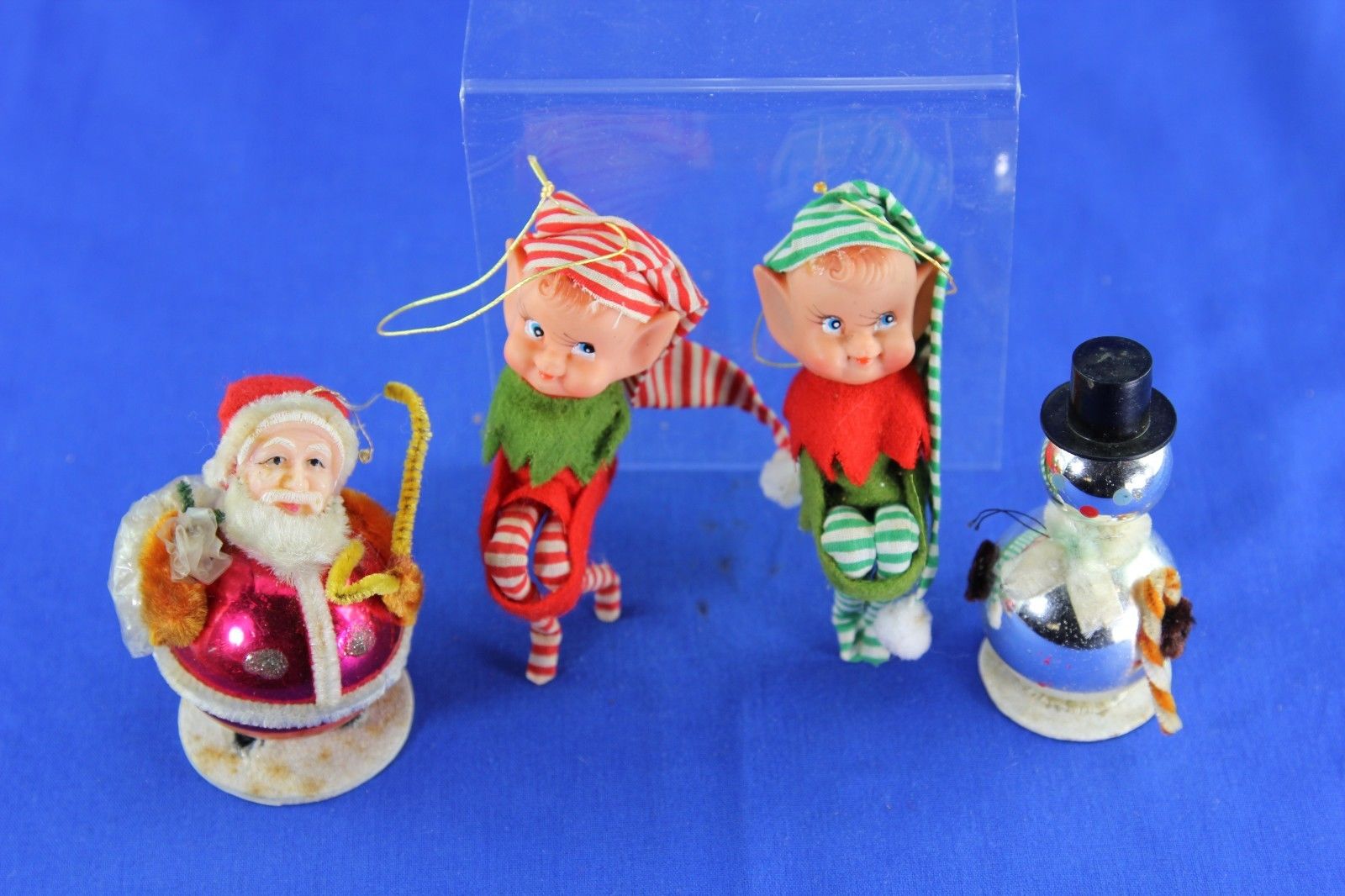 LOT OF FOUR VINTAGE CHRISTMAS ITEMS JAPANESE ELVES SANTA SNOWMAN