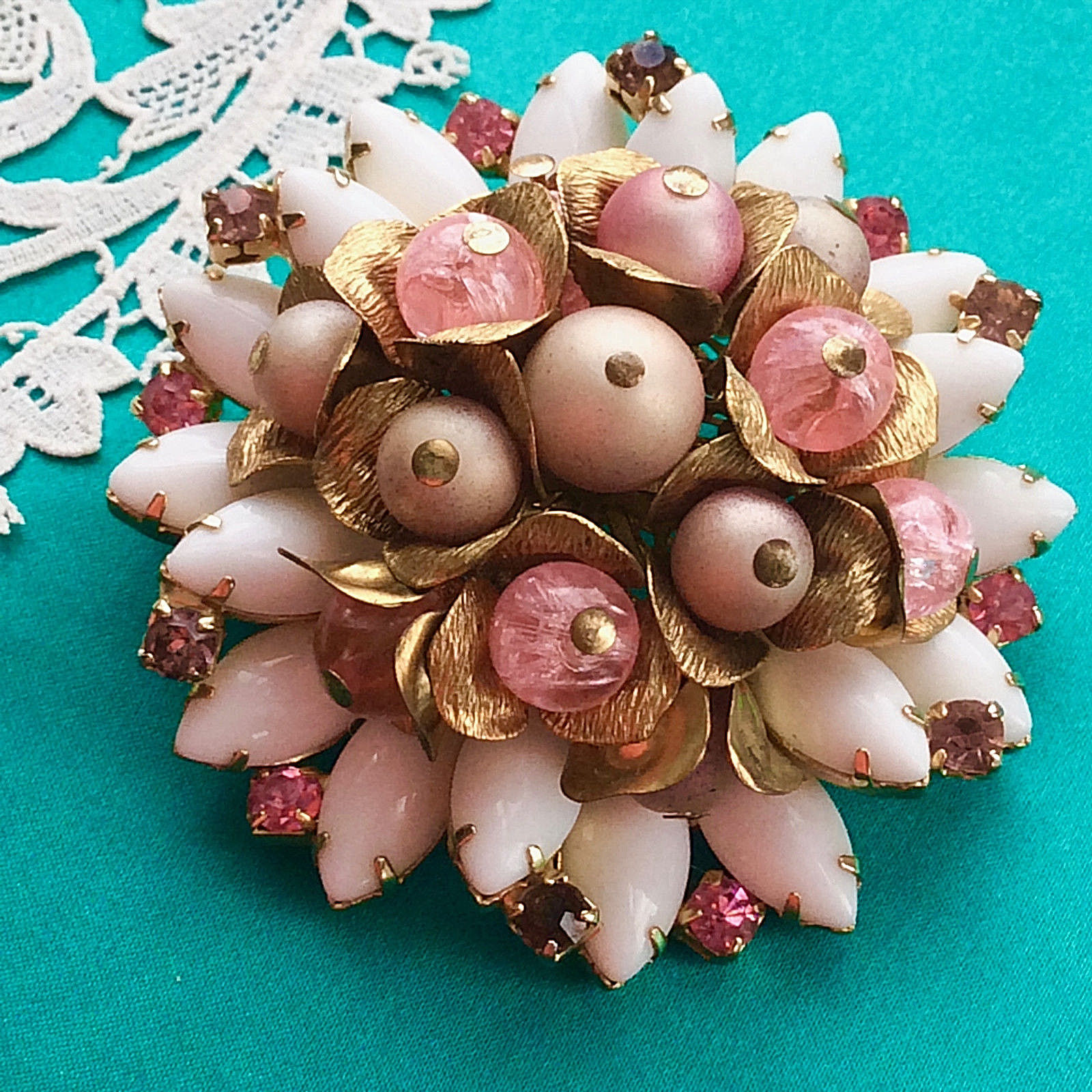 Title (ebay affiliate link): Designer Style Rhinestone PIN Milk Glass Pink Bead Cluster Domed Unsigned EVC!