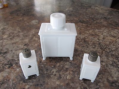 Vintage Milk Glass sugar bowl - Monitor top Refrigerator -Salt & Pepper Shaker