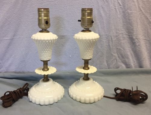 Title (ebay affiliate link): Vintage Pair (2) Hobnail Milk Glass Boudoir Dresser Table Lamps