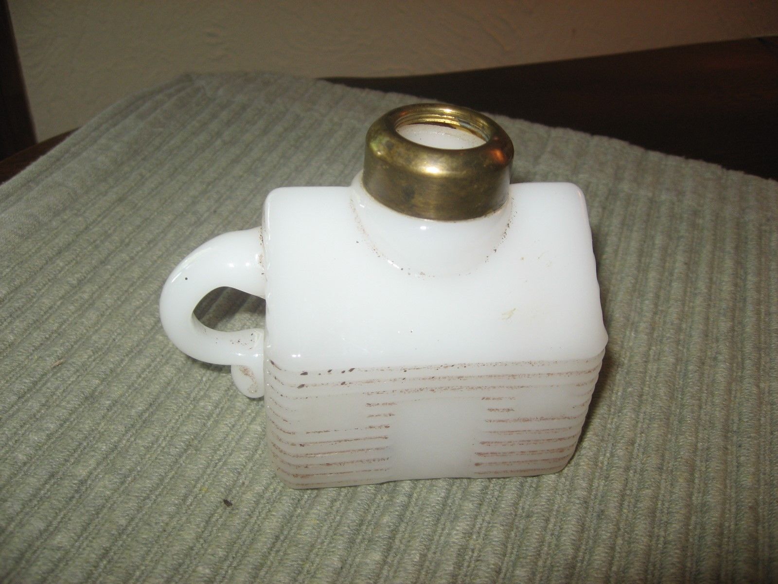 Title (ebay affiliate link): ANTIQUE MILK GLASS LOG CABIN FINGER LAMP BASE OLD EARLY KEROSENE NR