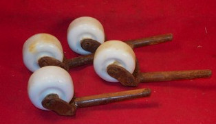 4 HEAVY DUTY ANTIQUE PORCELAIN FURNITURE CASTERS WHEELS