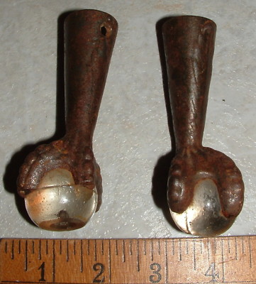 Title (ebay affiliate link): 2 Cast Iron Glass Ball Claw Foot Palor Table Leg Feet