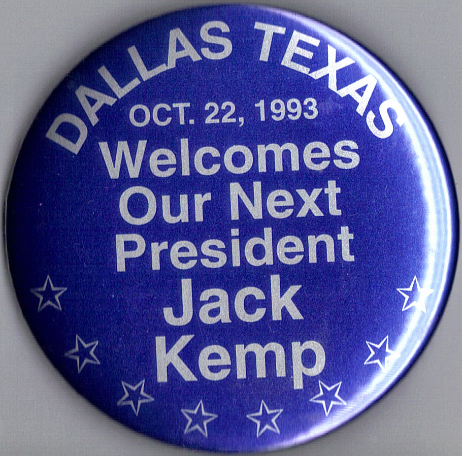 Title (ebay affiliate link): 1992 Jack Kemp 3" / "Welcome to Dallas Texas - Oct 22,1993" Visitation Button