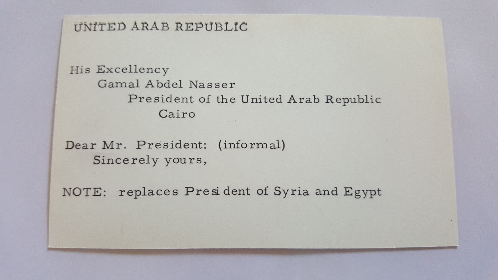 JFK ''s Personally Owned " Call Card " for United Arab Republic