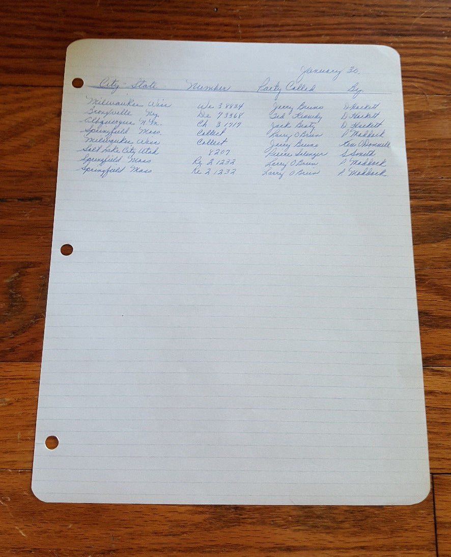 JFK''s Personally Owned Used Call Log Written by Evelyn Lincoln January 30, 1960