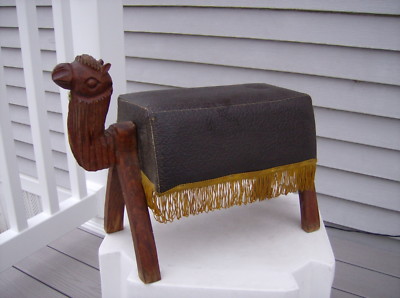Title (ebay affiliate link): Antique Fringed CAMEL FOOTSTOOL Vintage Wood Foot Stool