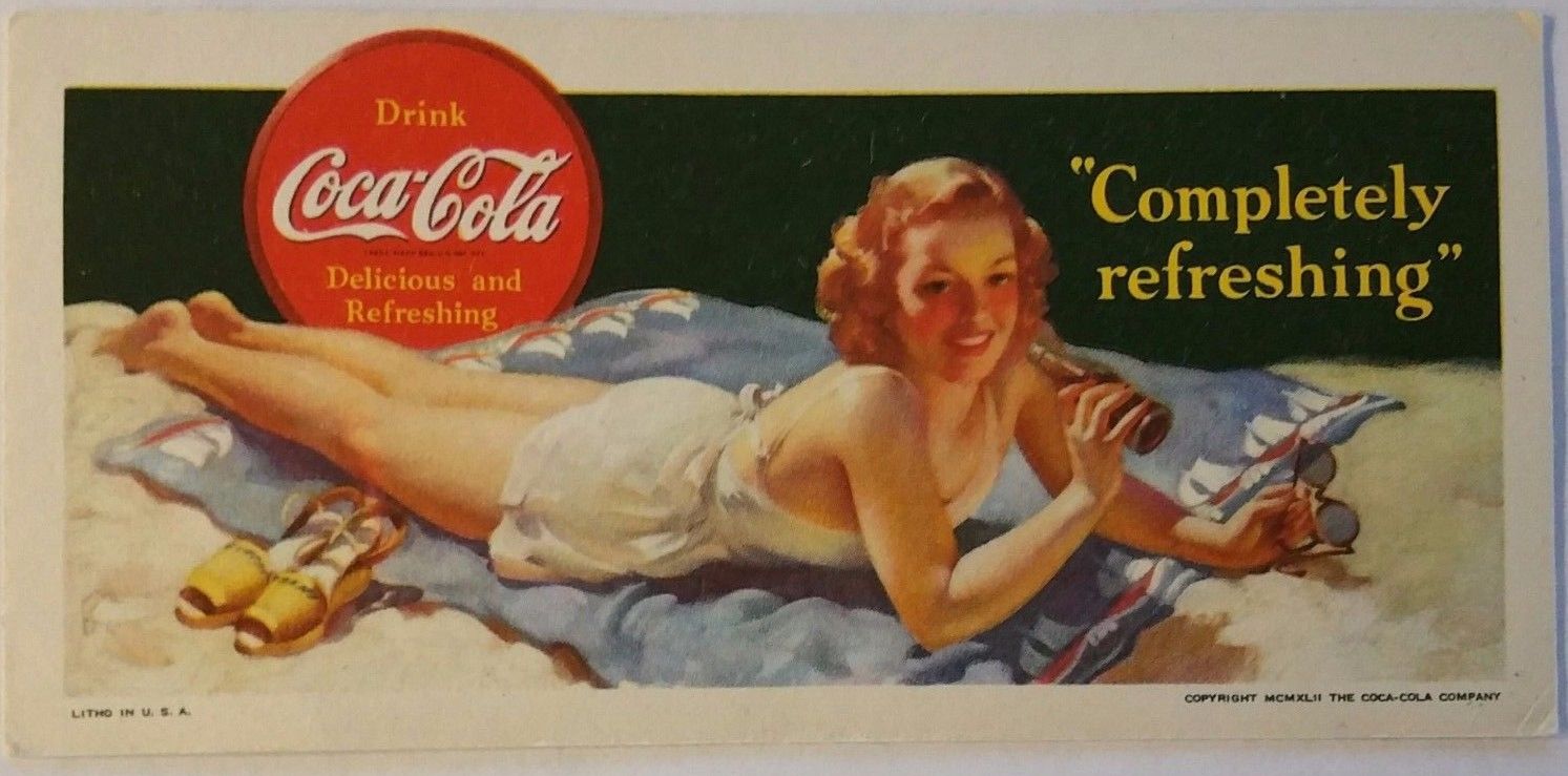 Title (ebay affiliate link): Rare version- Bikini - Coca-Cola Ink Blotter Ad 1942 "Completely refreshing"