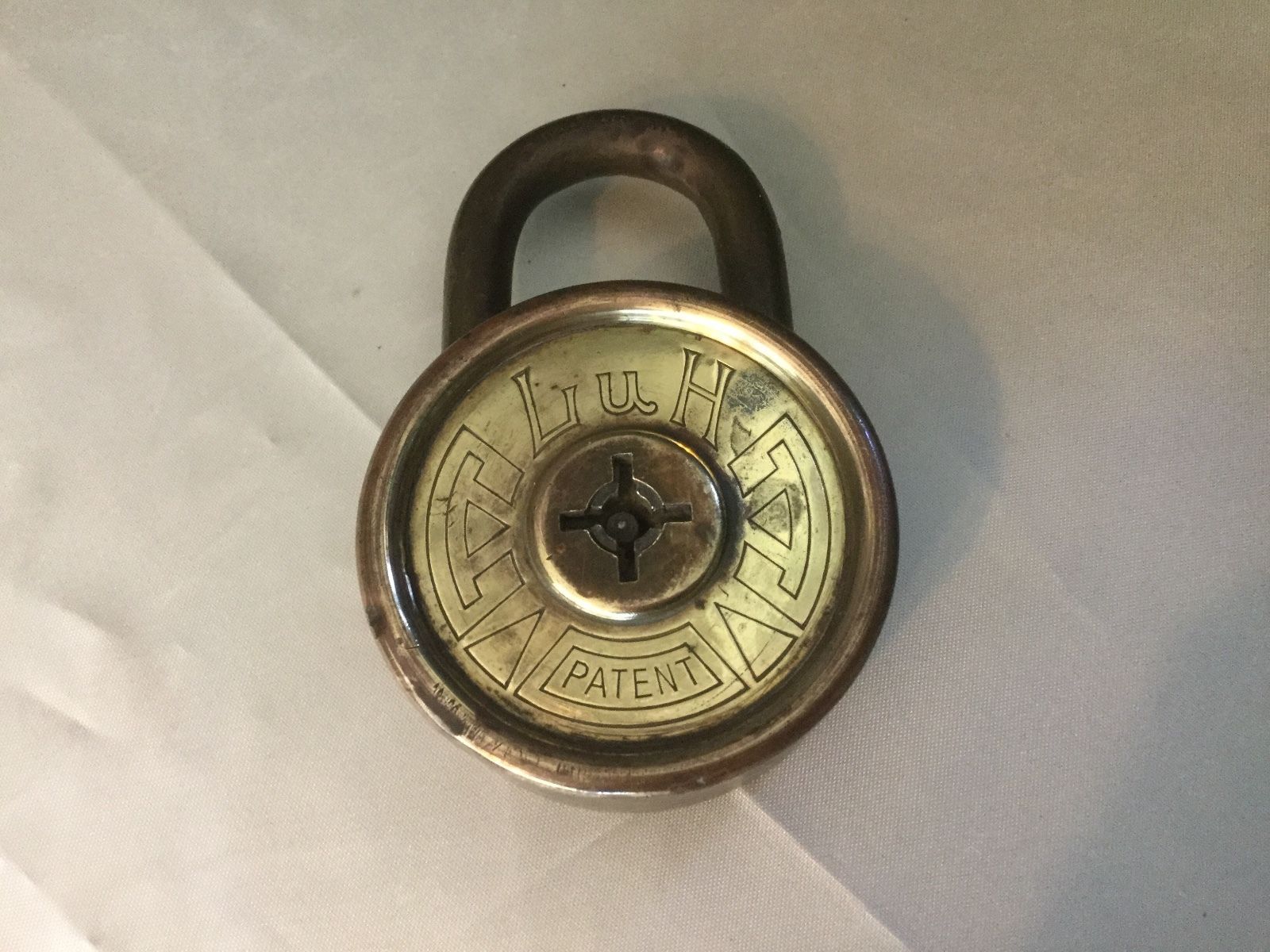 German LUH Padlock 3-1/2" Brass and Iron- No Key Rare 4 Sided Lock