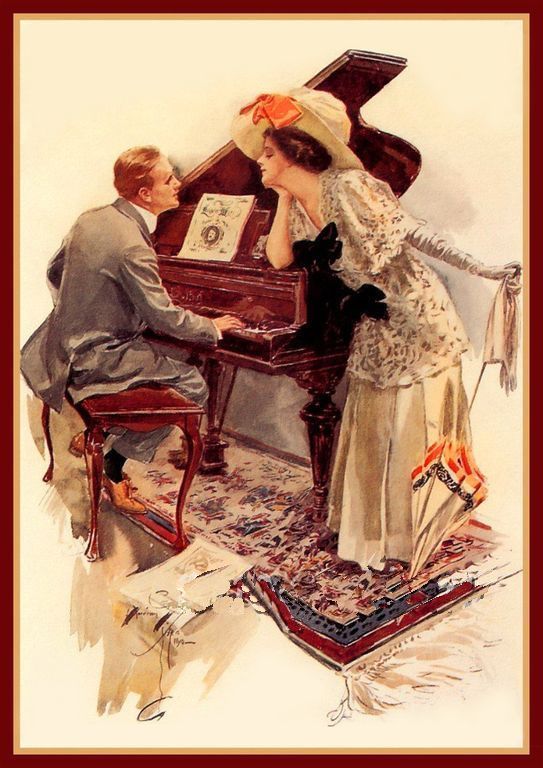 Title (ebay affiliate link): NEW! Young lady gentleman music HARRISON FISHER 84 modern card reprint