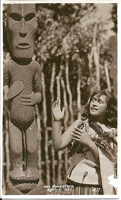 Old New Zealand Black & White Postcard , Her Ancestors Effigy .(C)