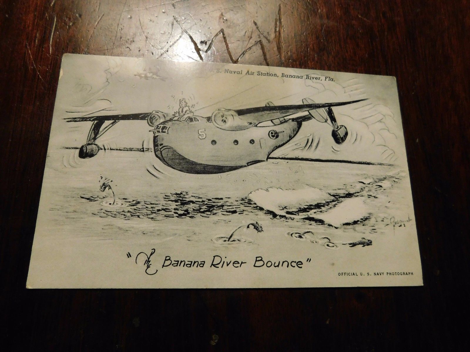 Title (ebay affiliate link): VINTAGE BANANA RIVER BOUNCE U.S. NAVAL AIR STATION COMIC FL POSTCARD artist sign