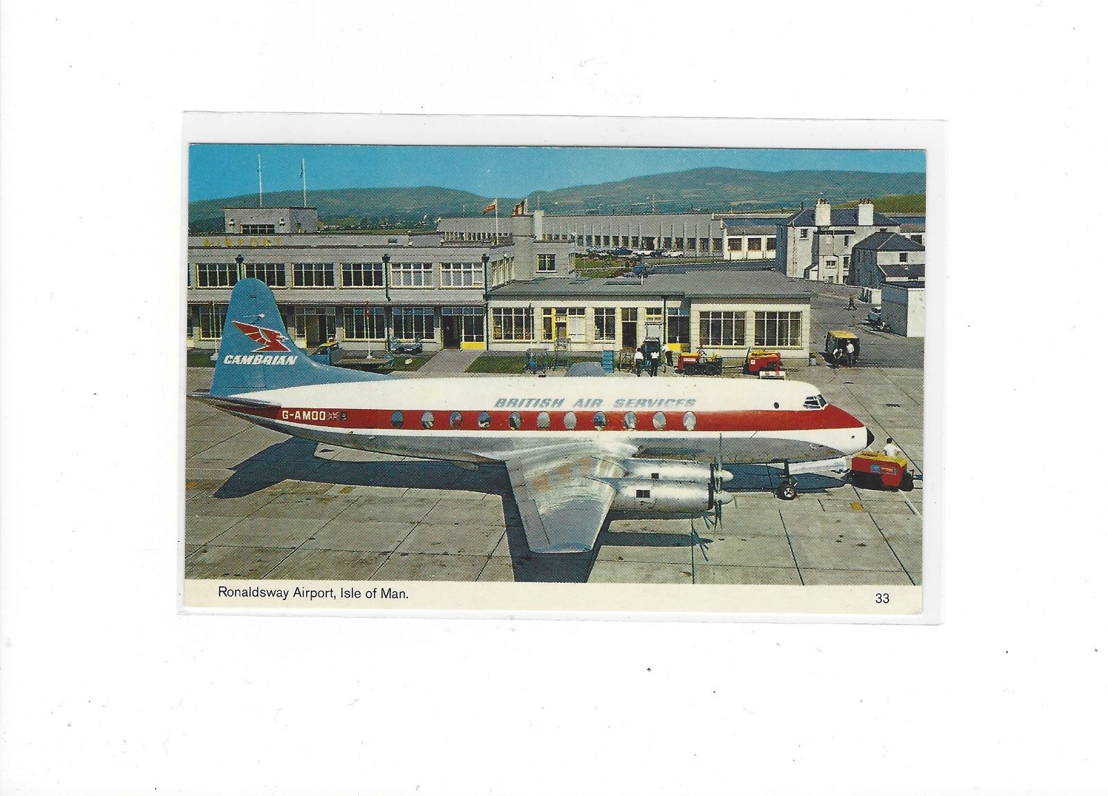 Cambrian Airlines viscount at Isle of Man airport postcard