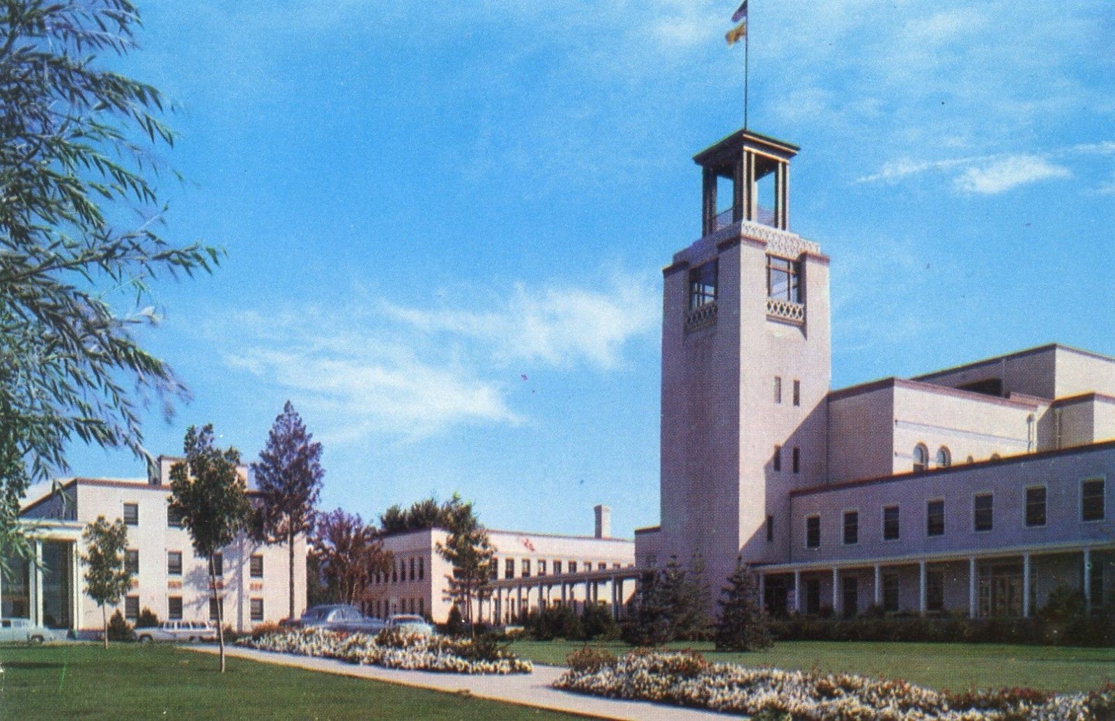 Santa Fe New Mexico, vintage postcard, New State Capitol Bldg., classic cars