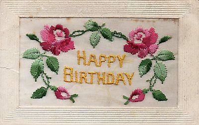 HAPPY BIRTHDAY: WW1 EMBROIDERED SILK POSTCARD