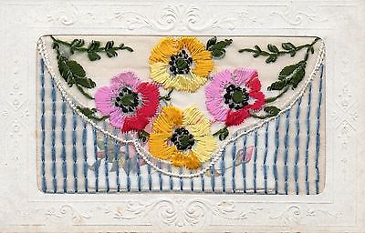 PRETTY FLOWERS: WW1 EMBROIDERED SILK POSTCARD