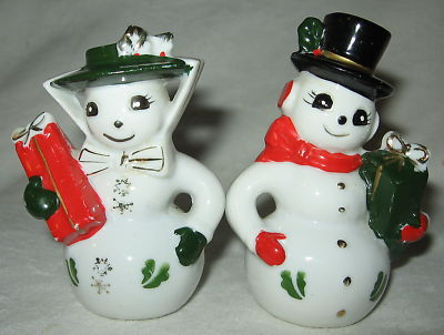 Title (ebay affiliate link): VTG SALT PEPPER SET MR. MRS SNOWMAN JAPAN TOPHAT L@@K