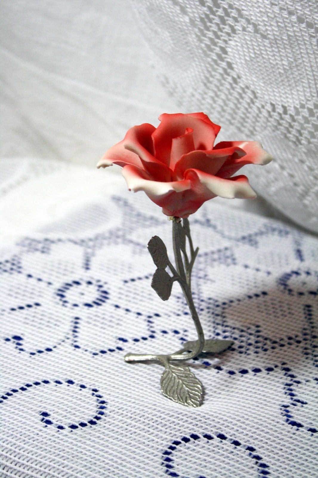 Title (ebay affiliate link): : VINTAGE CAPODIMONTE ITALIAN PORCELAIN OPEN ROSE WITH A SILVER ME
