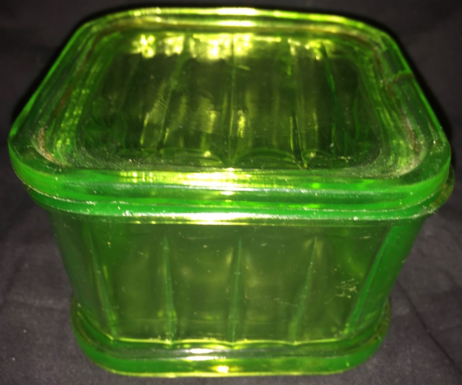 VINTAGE GREEN GLASS REFRIGERATOR DISH WITH COVER