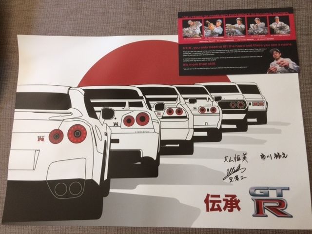 NISSAN GT-R GTR POSTER SIGNED BY 3 TAKUMI (MASTER CRAFTSMAN)