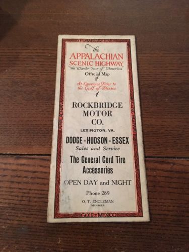 Title (ebay affiliate link): 1920s Road Map Appalachian Highway Rockbridge Motor Co Dodge Hudson Essex Tire