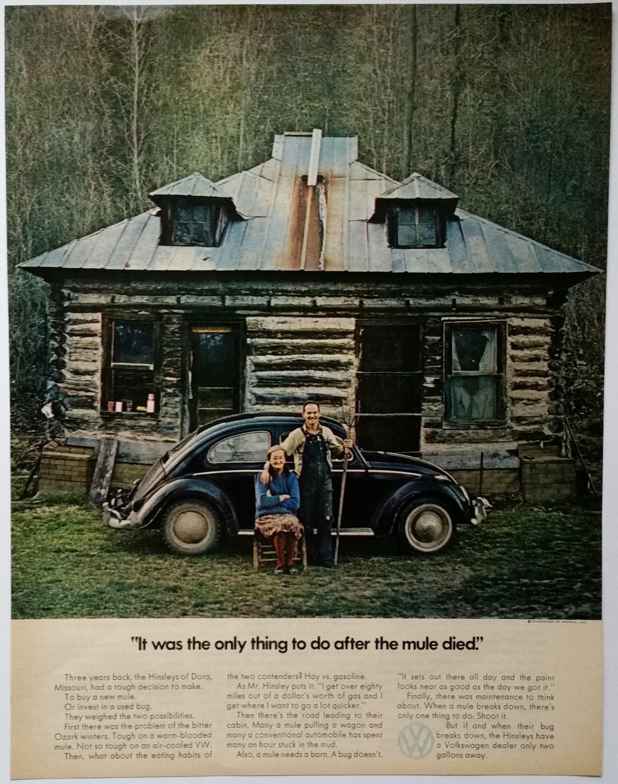 Volkswagen Bug 1971 Ad It was the only thing to do after the mule died