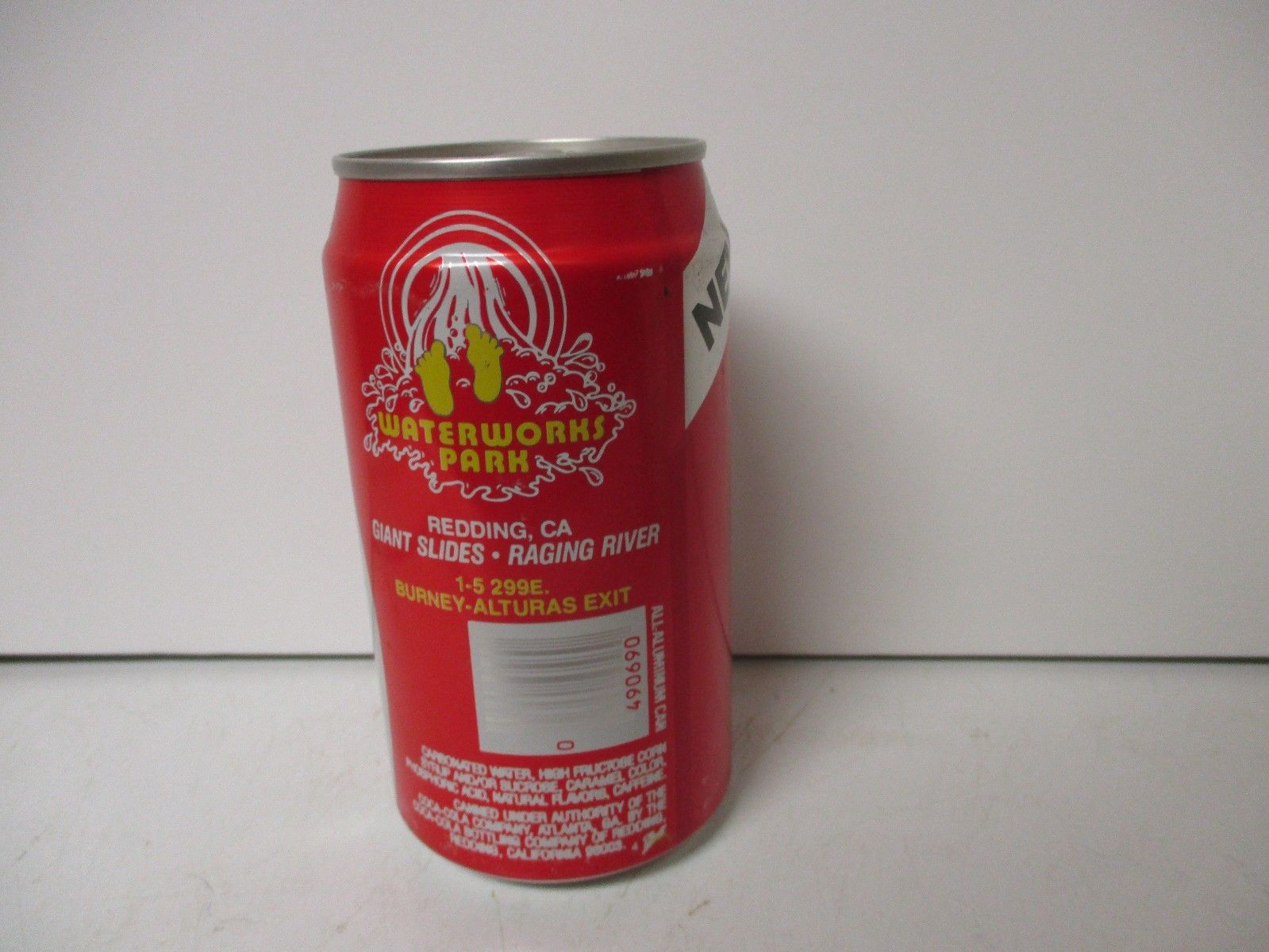 1985 Coca-Cola New! Waterworks Park ad soda can.