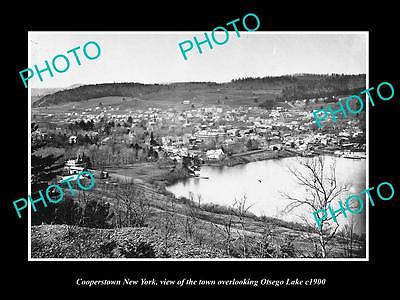 OLD LARGE HISTORIC PHOTO OF COOPERSTOWN NEW YORK, VIEW OF THE TOWN & LAKE c1900