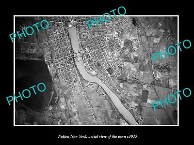 OLD LARGE HISTORIC PHOTO OF FULTON NEW YORK, AERIAL VIEW OF THE TOWN c1935 1