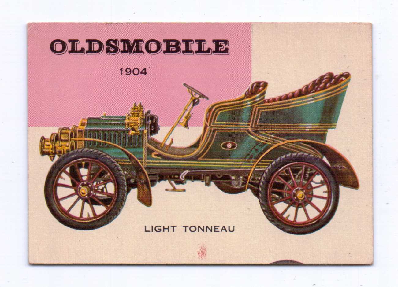 Title (ebay affiliate link): 1954 TOPPS WORLD ON WHEELS #149 1904 OLDSMOBILE TONNEAU EXNM