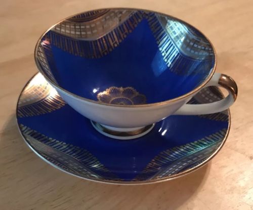 Title (ebay affiliate link): Golden Crown E & R 1886 Western Germany Demi Cup and Saucer Royal blue & Gold