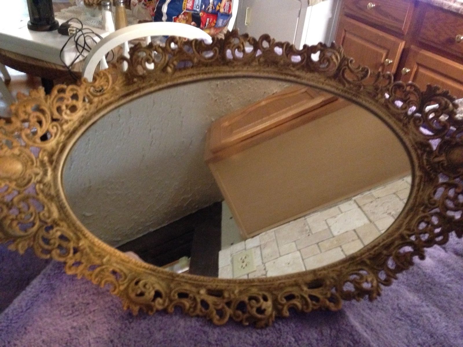 Vintage EMIG Ornate Hanging Cast Iron Mirror Gold#1497