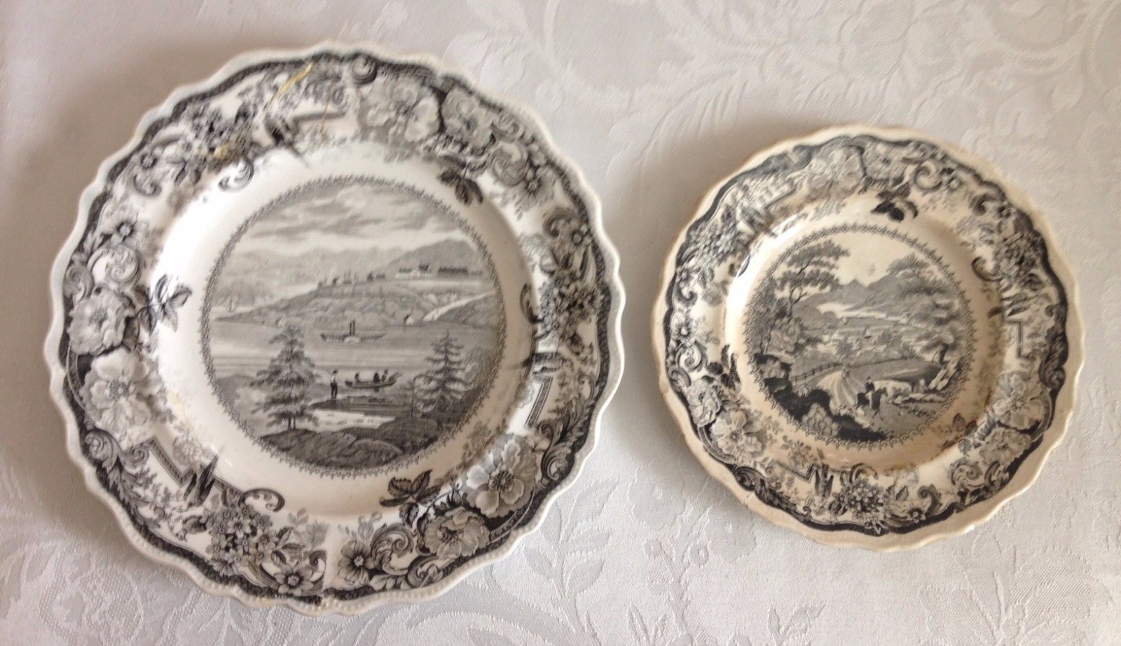 Title (ebay affiliate link): Pair Antique Historical Staffordshire Black Transferware NY Military Fort Plates