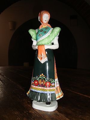 OLD ANTIQUE HUNGARIAN HOLLOHAZA HAND-PAINTED PORCELAIN FIGURE FOLK GIRL FIGURINE