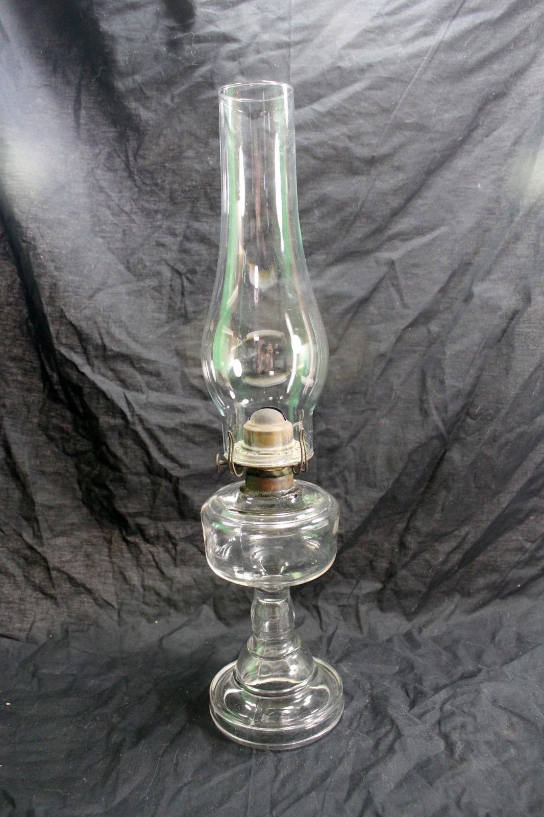 Antique Oil Lamp Clear Glass Burner marked Pat 1879 1899 ? 18 1/2" Tall