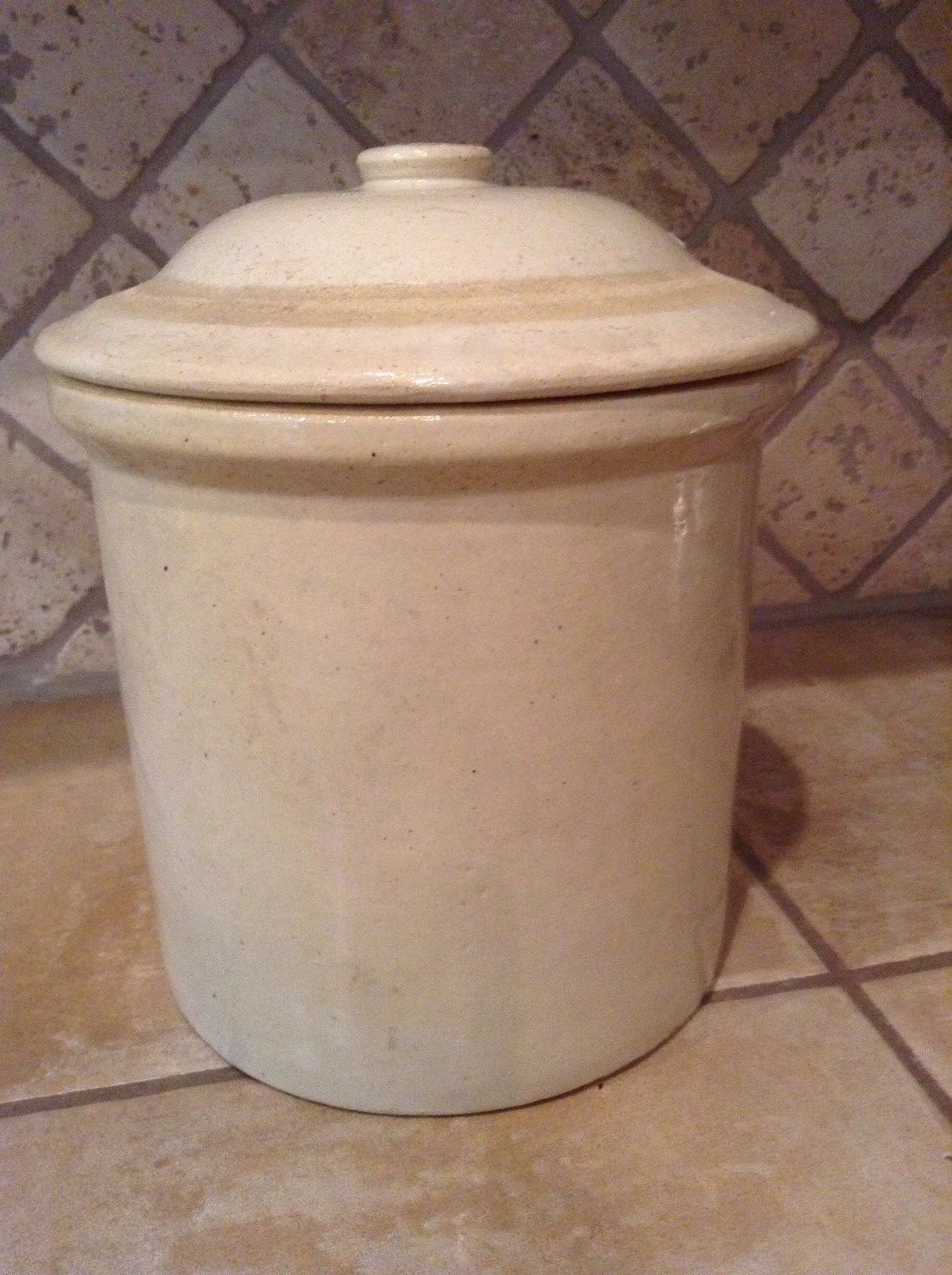 Title (ebay affiliate link): Antique Farmhouse Salt Glaze Stoneware Crock Jar With Lid Great Condition