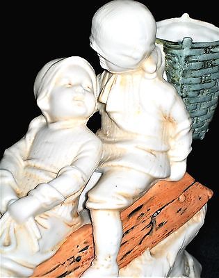ANTIQUE GERMAN VICTORIAN SCHNEIDER SNOW BABY GIRL & BOY ON SLED BISQUE FIGURINE