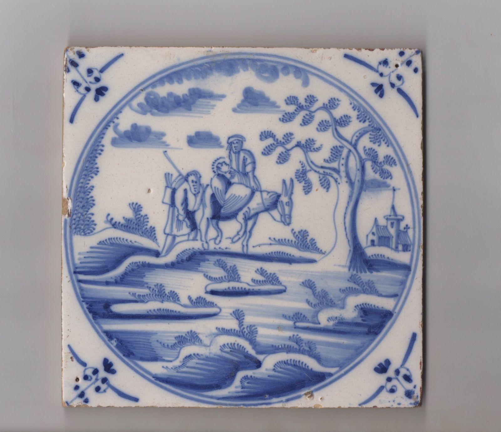 Title (ebay affiliate link): Antique Delft Blue & White Biblical Tile Flight to Egypt Matthew 2:13-23
