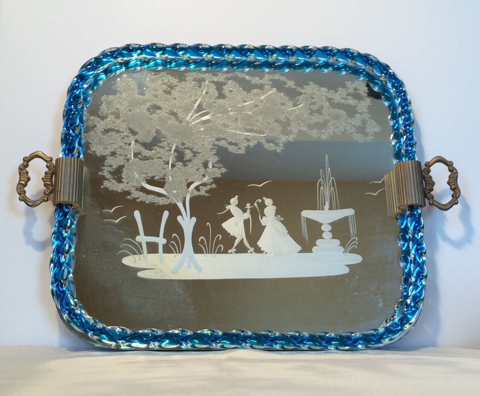 Title (ebay affiliate link): VTG Barovier Murano Italy ART glass VANITY TRAY MIRROR Etched Rope Trim!