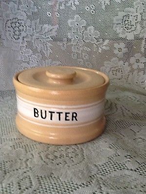 antique east knoll n. Stoneware yelloware banded cream butter crock yellow ware