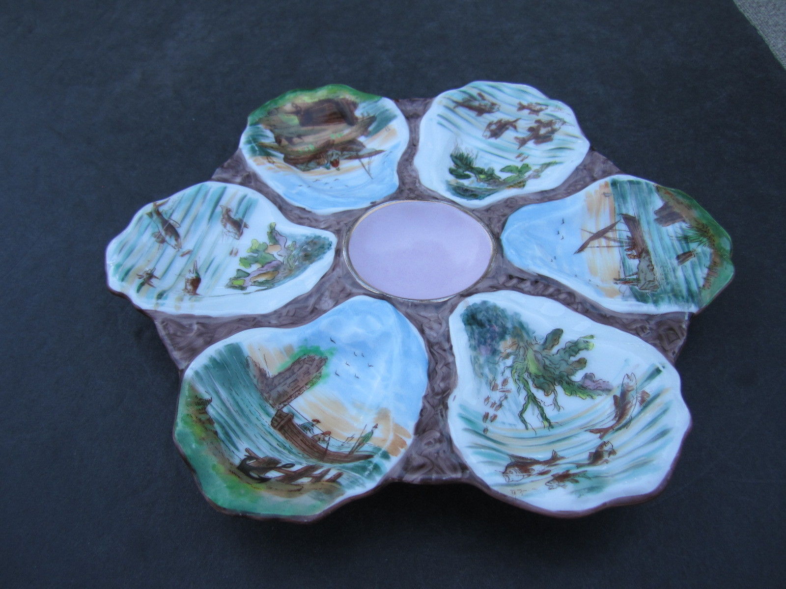 Title (ebay affiliate link): Orante Old Scenic Hand Painted Oceanic Scenes Decorated Ceramic Oyster Plate