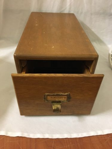 VINTAGE WOOD FILE BOX SINGLE DRAWER INDEX LIBRARY CARD FILE