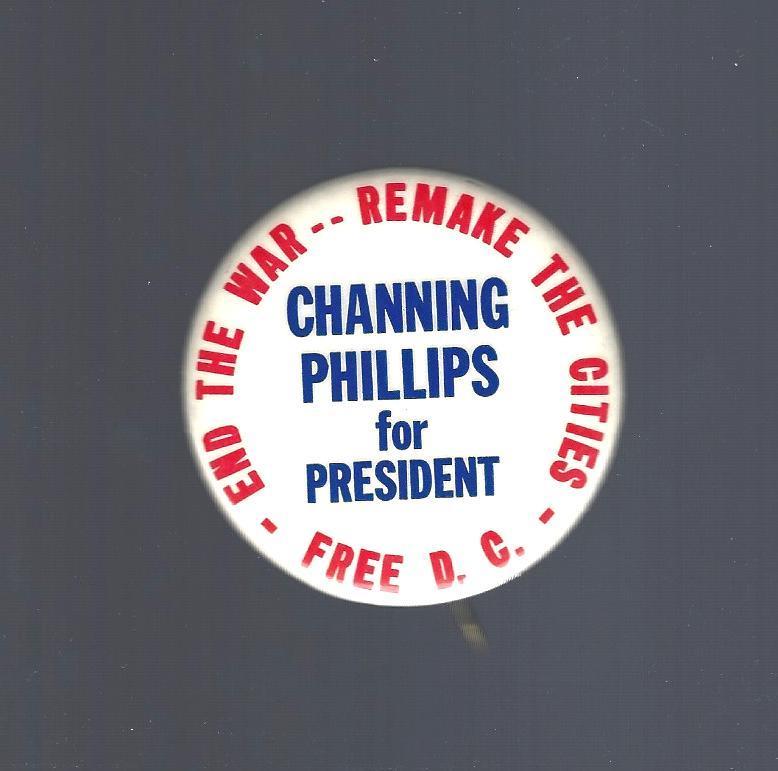 Title (ebay affiliate link): 1968 CHANNING PHILLIPS FOR PRESIDENT - END THE WAR - FREE D.C. - CITIES BUTTON