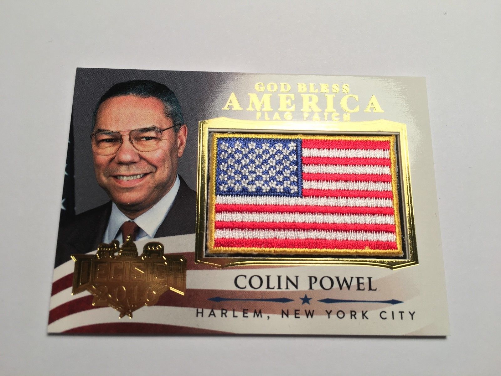 Title (ebay affiliate link): Colin Powell Powel Decision 2016 Gold ERROR God Bless America Mini Flag #GBA20