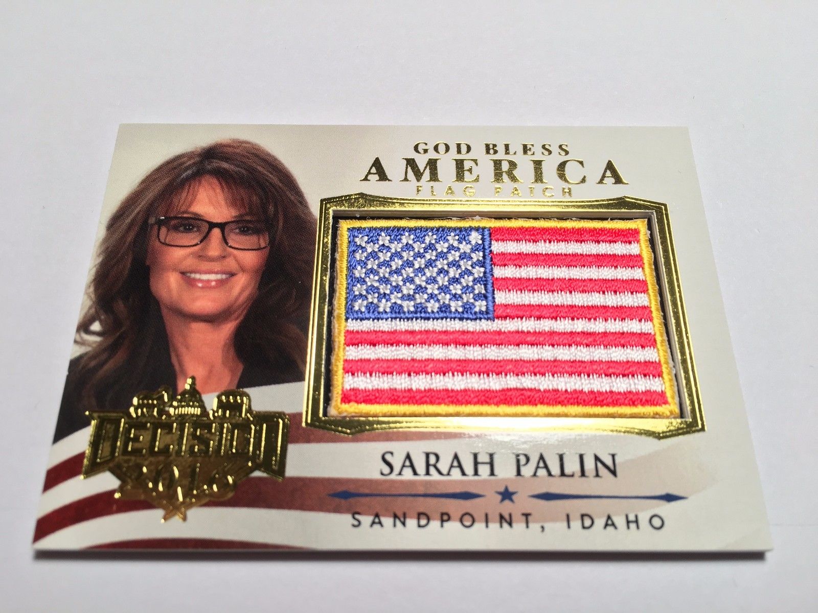 Title (ebay affiliate link): Sarah Palin Decision 2016 GOLD God Bless America Mini Flag GBA38