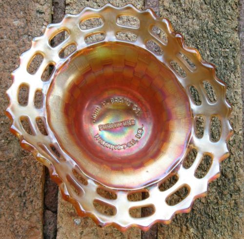 Title (ebay affiliate link): ANTIQUE FENTON OPEN EDGE CARNIVAL GLASS HAT JOHN H BRAND FURNITURE ADVERTISING
