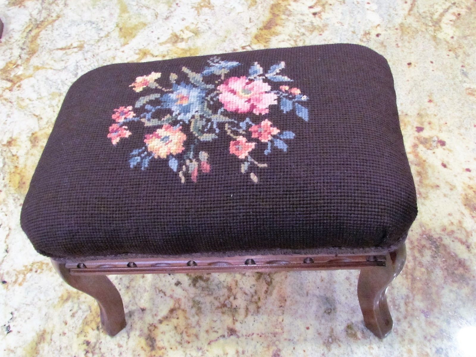 Title (ebay affiliate link): Antique Needlepoint Floral Foot Stool Bench Vintage